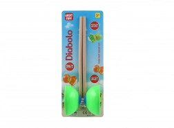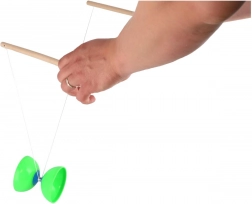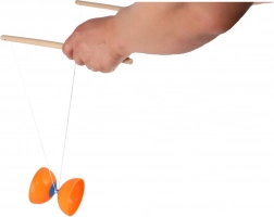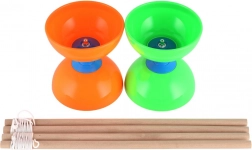 Pevné plastové misky odolají nárazům, dřevěné hůlky poskytují jistý úchop a přirozený cit při ovládání diabolka.