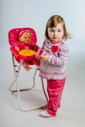 Tato vysoká židlička se stolečkem je ideální pro holčičky, které chtějí svou panenku nakrmit. S elegancí a funkčností přináší hodiny zábavy.