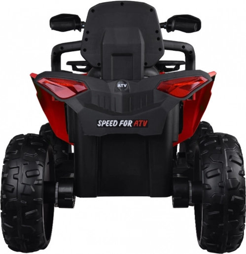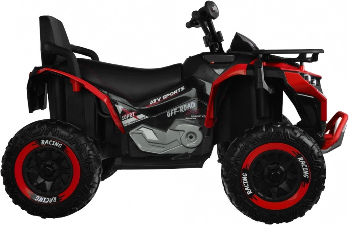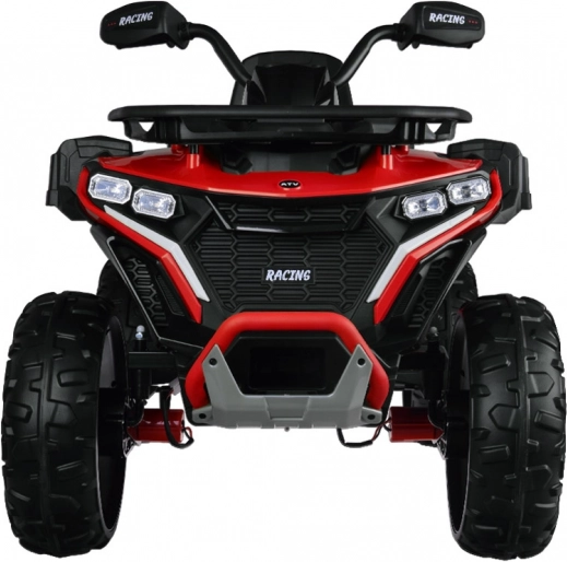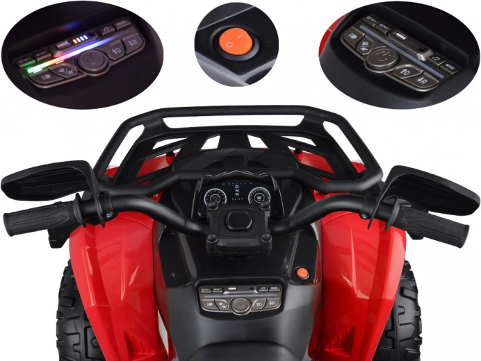 Dětská čtyřkolka na baterie 4x4 červená s realistickými světelnými a zvukovými efekty pro bezpečnou a komfortní jízdu.