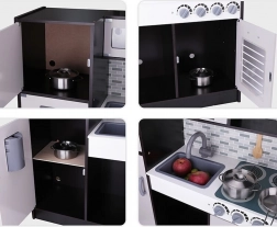 Dřevěná konstrukce kuchyňky zaručuje trvanlivost a estetický vzhled a poskytuje také realistický zážitek při hře. Vybavení kuchyňky: