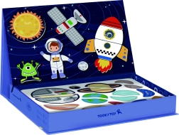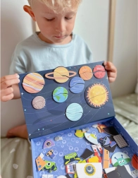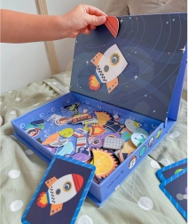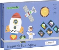 Magnetická skládačka od TOOKY TOY je fascinující vzdělávací hračka, která děti provede nekonečnými vesmírnými světy. Set obsahuje 12 různých vesmírných vzorů, každý rozdělený na čtyři až pět magnetických puzzlů. Díky magnetickým nálepkám mohou děti snadno skládat své vlastní vesmírné scény na přiložené magnetické tabuli.