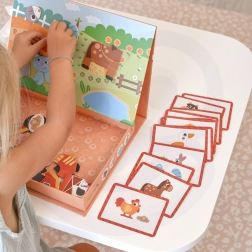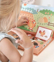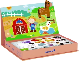 S magnetickou skládačkou od Tooky Toy zažijí děti radost z hravého učení na farmě. Zvolené vzory a postavy jako stodolní zvířata, farmář a jabloň ukazují kouzlo farmářského života. Každý projekt se skláda ze čtyř až pěti magnetických puzzlí, což dětem umožňuje sestavovat vlastní farmářské scénky.