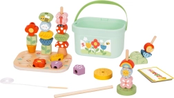 Dřevěný vzdělávací box Magic Garden přináší dětem pestrý svět listů, květin a roztomilých broučků. Podporuje jemnou motoriku, logické uvažování i kreativitu díky kombinaci navlékání, třídění a stavění vzorů podle aktivitních karet. Robustní dřevěné dílky v pastelových barvách se dobře drží a lákají k opakované hře.