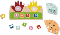 - Dřevěná podstava se dvěma pohyblivými rukama (červenou a žlutou), které simulují počítání na prstech
