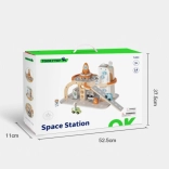 Tato promyšleně navržená dřevěná hračka přenese děti do světa kosmických misí. Vícepatrová konstrukce s přehledným značením drah, pohyblivým výtahem a dlouhou sjezdovou rampou vybízí k příběhům plným startů, přistání a servisních úkolů. Balíček doplňují figurky astronautů, přistávací plošina s raketou, rover a další doplňky pro realistickou hru.