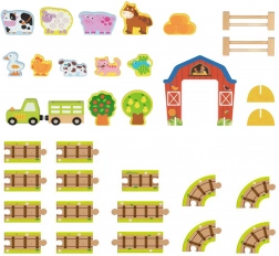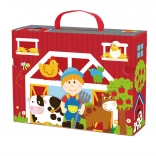 Dřevěná farma v kufříku od značky Tooky Toy je skvělý a rozsáhlý herní set, který zaručí hodiny zábavy. Set obsahuje traktůrek s přívěsem na magnety a další úžasné komponenty.
