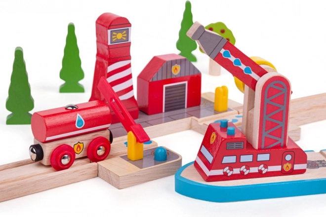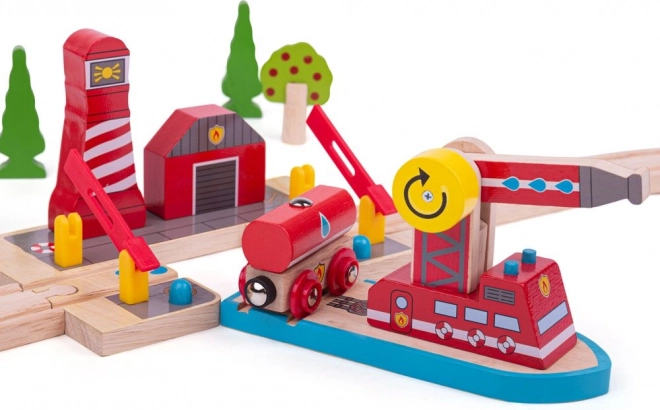 Vydáte se na dobrodružnou záchrannou misi po železnici a moři s touto kvalitní dřevěnou sadou od Bigjigs Rail. Součástí je hasičský člun s pohyblivou hadicí, který lze snadno kombinovat s dalšími vláčkodráhami na trhu. Výrobek je z kvalitních a zodpovědně získaných přírodních materiálů, které splňují současné evropské bezpečnostní normy.