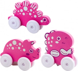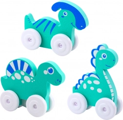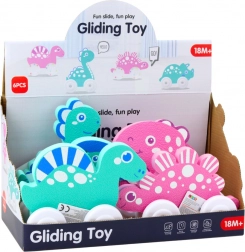 Barevné dinozaury na kolečkách jsou navrženy pro zábavu dětí. Mají přátelský vzhled, zaoblené tvary a pastelové barvy, které vzbuzují fantazii. Díky kolečkům se hračky snadno pohybují a lehká konstrukce umožňuje dítěti je snadno tlačit a vzít si je kamkoliv.