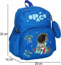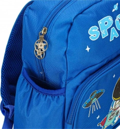 Objevte rozmanité úložné možnosti s tímto dětským batohem. Hlavní velká komora se zapíná na zip a poskytuje dostatek prostoru pro většinu potřeb školkáře. Přední menší kapsa je perfektní na drobnosti nebo svačinu, zatímco okrouhlý sáček v přední části dodává batohu jedinečný vzhled. Po stranách najdete kapsy ideální pro láhev s vodou nebo kapesníky.