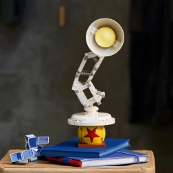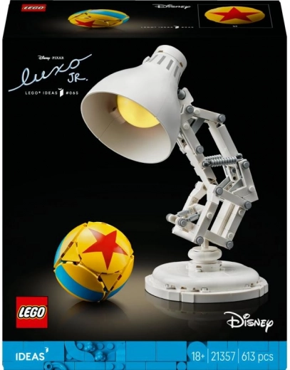 Postavte si stylovou lampu LUXO JR., která se proslavila v úvodní znělce studia DISNEY PIXAR. Model je plně pohyblivý – naklánění stínidla, ohýbání ramen a realistické „pružiny“ umožní nastavit ikonické pózy včetně skoku na míč. Součástí je také Pixarův míč, který se otevře a odhalí tematické překvapení inspirované filmy jako Odlet (Up), Úžasňákovi (The Incredibles), Ratatouille, Příšerky s.r.o. (Monsters, Inc.), Toy Story a Hledá se Nemo (Finding Nemo).