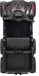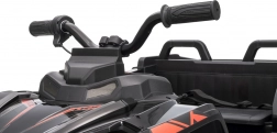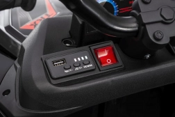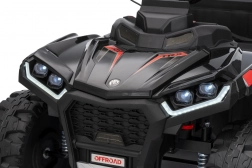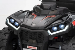 Bezpečnost je zajištěna pásy a piankovými koly pro stabilní a pohodlnou jízdu. Čtyřkolka má také LED světlomety a integrovaný audio panel, obsahující MP3 přehrávač, Bluetooth, a USB vstup, který podporuje poslech oblíbené hudby během jízdy.