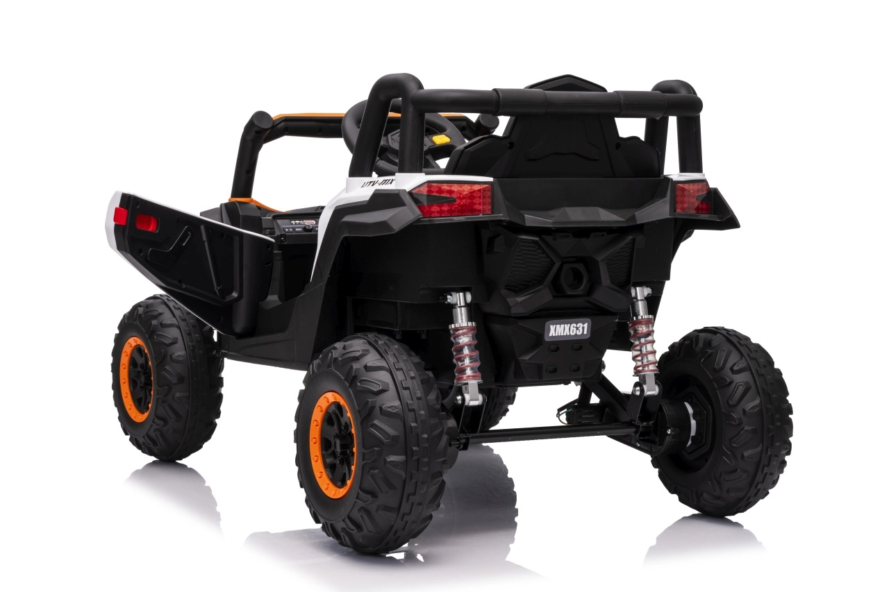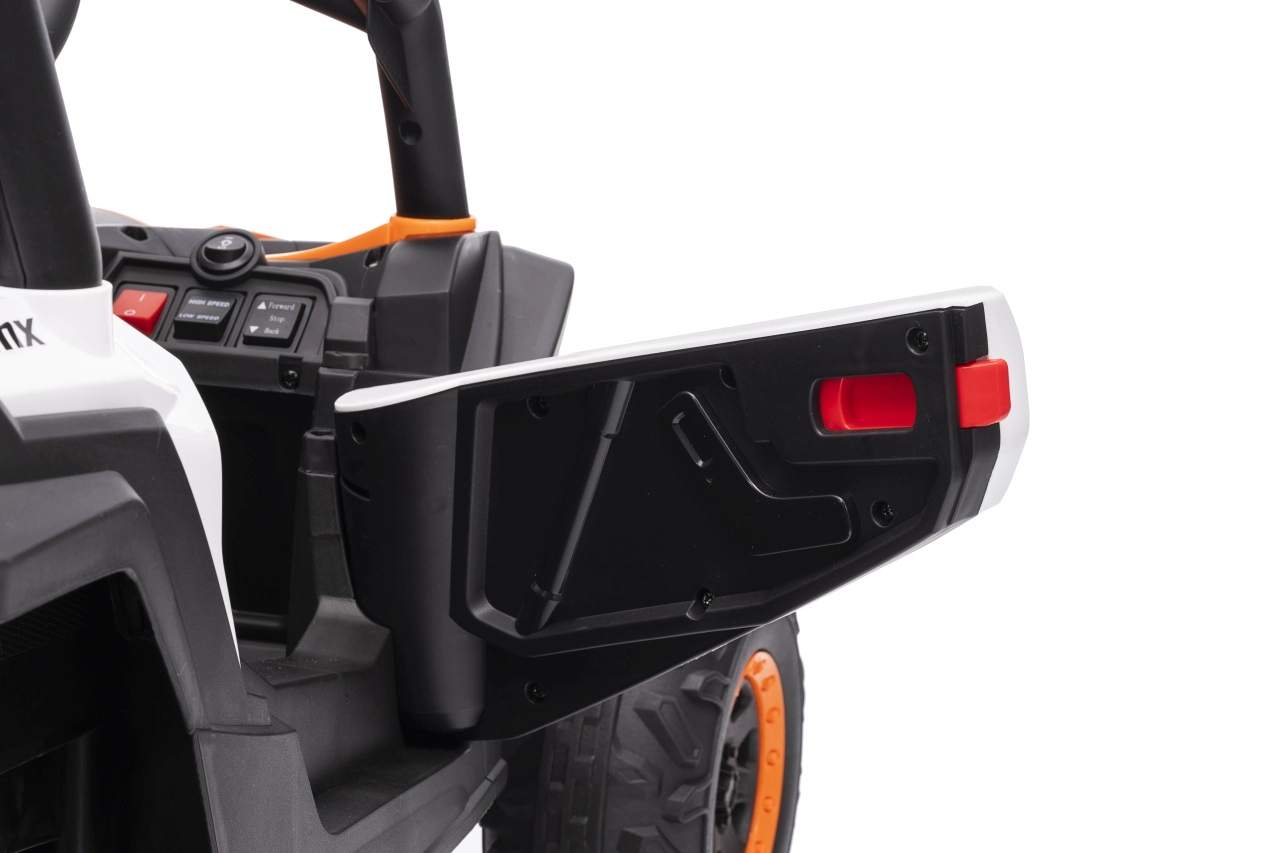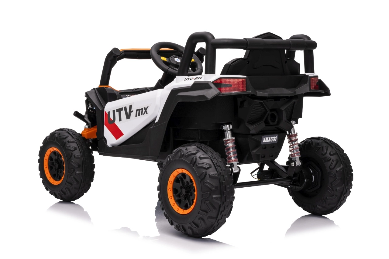 Elektrický pojazd Buggy Madman UTV-MX je vybaven čtyřmi silnými motory o výkonu 35W každý a napájen baterií 12V10Ah. Ovládání je zajištěno pomocí velmi frekvenčně stabilního 2,4 GHz dálkového ovládání, které nabízí volbu ze tří rychlostí a lze jím aktivovat i bezpečnostní tlačítko Stop.