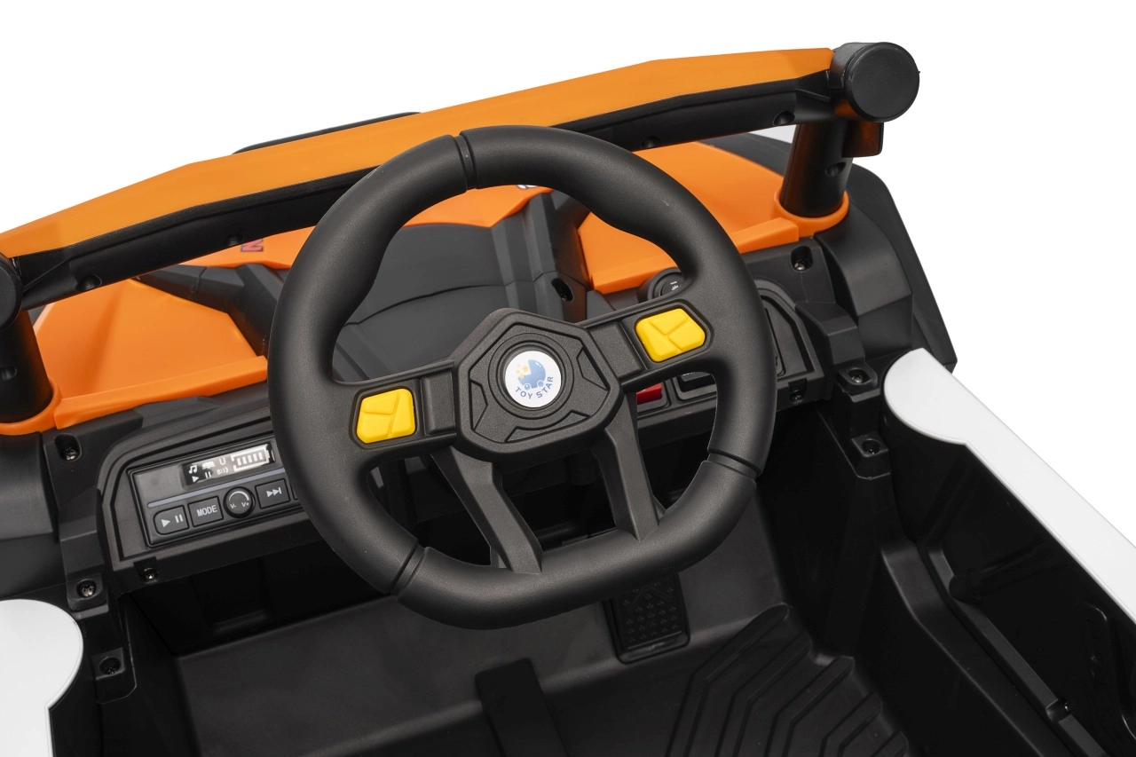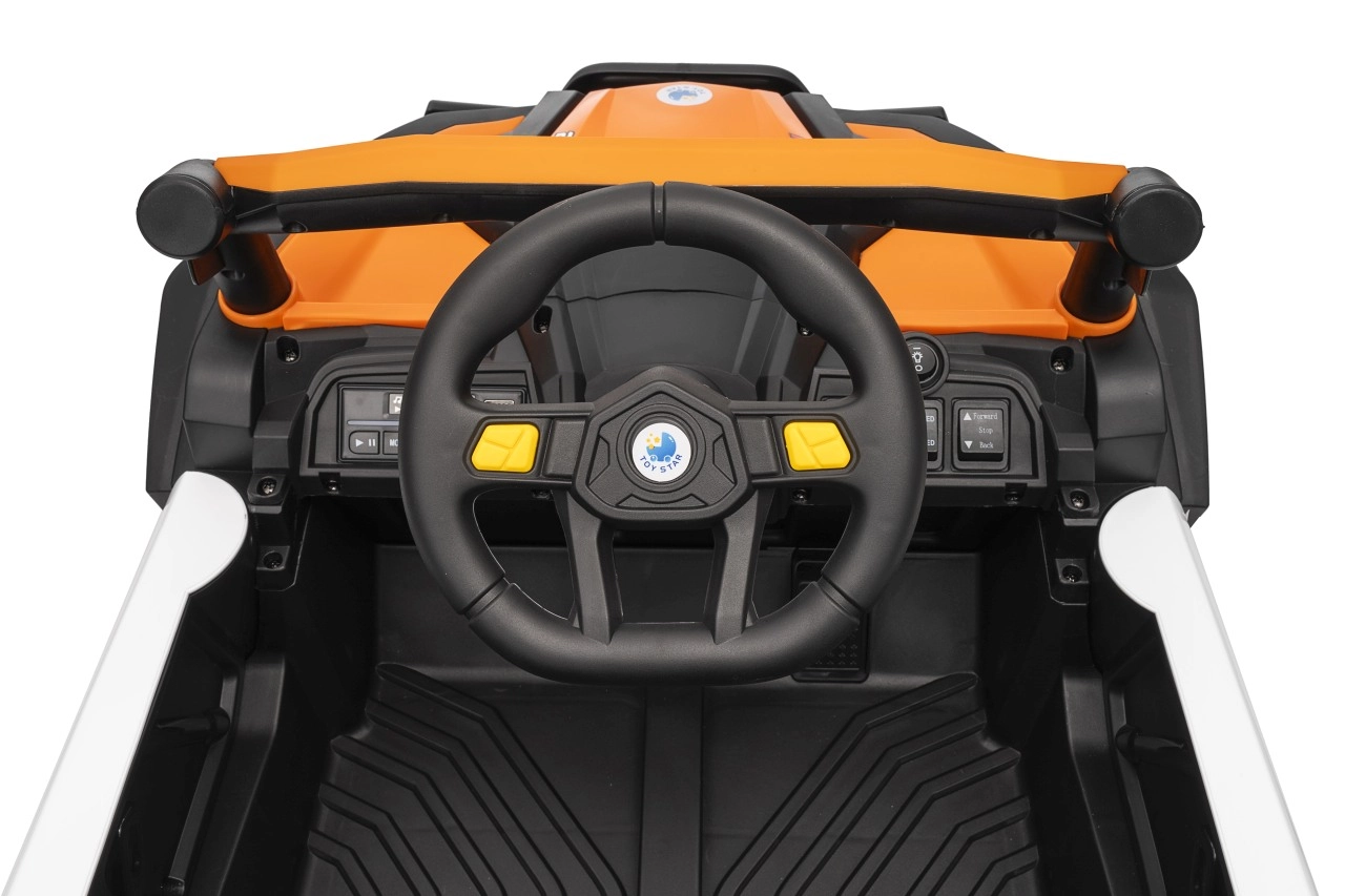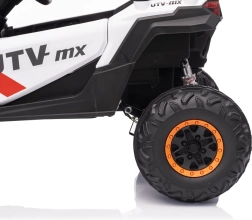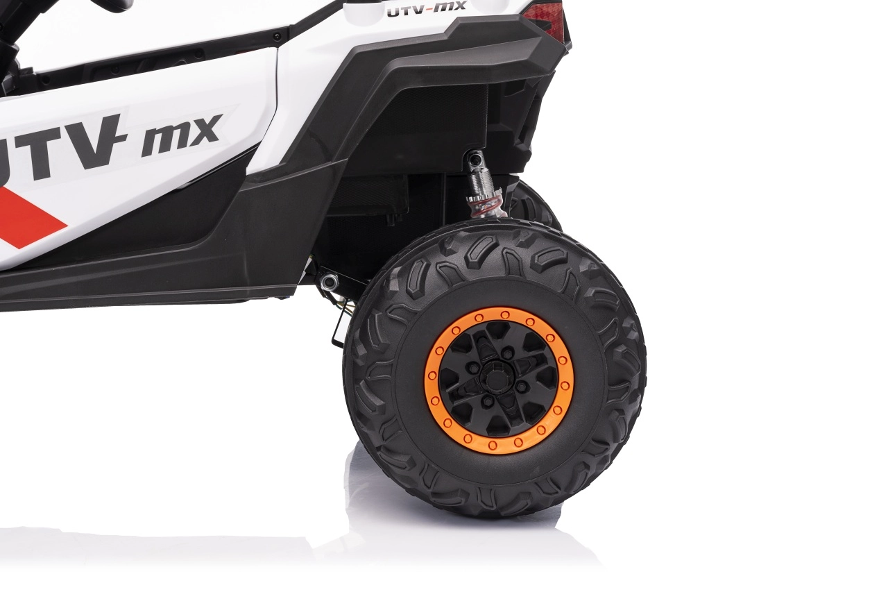 Elektrický pojazd Buggy Madman UTV-MX je vybaven čtyřmi silnými motory o výkonu 35W každý a napájen baterií 12V10Ah. Ovládání je zajištěno pomocí velmi frekvenčně stabilního 2,4 GHz dálkového ovládání, které nabízí volbu ze tří rychlostí a lze jím aktivovat i bezpečnostní tlačítko Stop.