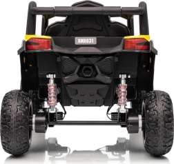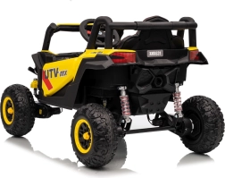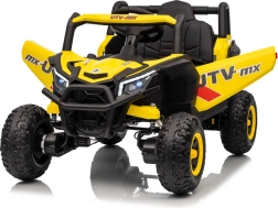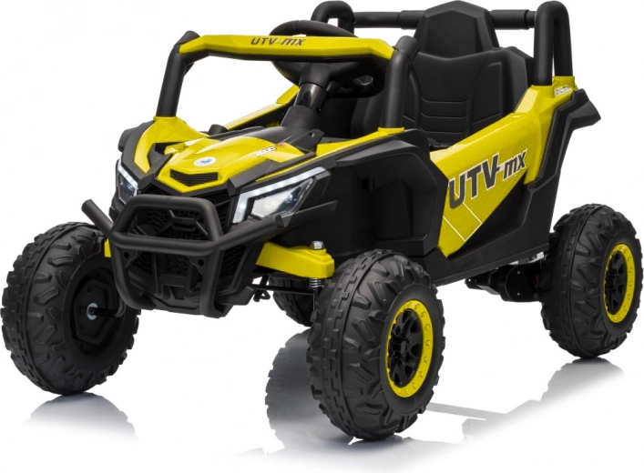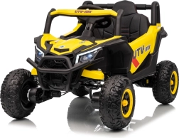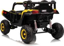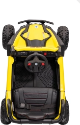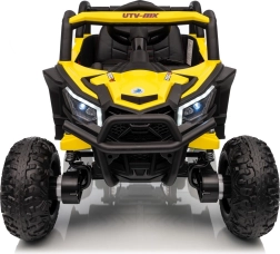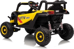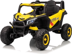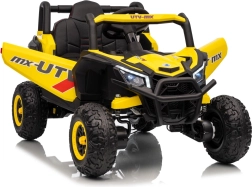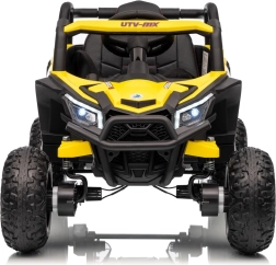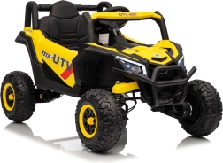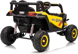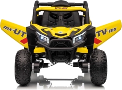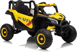 Tato žlutá bugina Madman UTV-MX je ideální pro dětskou jízdu díky výkonnému motoru o výkonu 4x35W a baterii 12V10Ah, která vydrží dlouhé jízdy. Ovládání je snadné s dálkovým ovládáním na frekvenci 2,4 GHz a třemi rychlostními stupni.