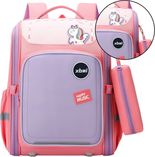Pastelově růžový batoh s jednorožcem je navržen pro každodenní použití a nabízí moderní funkce spojené s příjemnou estetikou. Batoh se vyznačuje jemnými barvami, ozdobnými nášivkami a motivem jednorožce, což ho činí oblíbeným společníkem pro školní dny. Růžovo-fialová barevná kombinace a zaoblený tvar s jemnými detaily dodávají celku lehkost a jedinečný charakter.