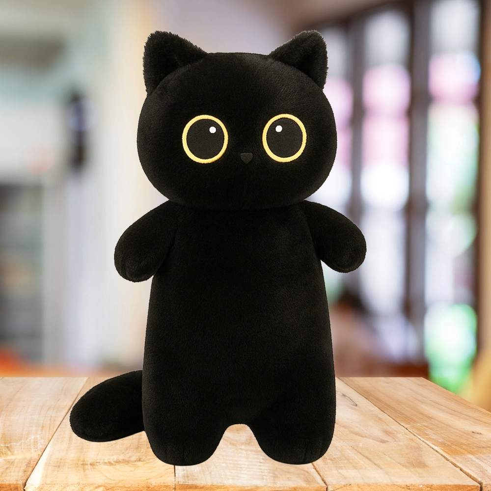 Plyšová hračka v podobě černé kočky je nejen hračkou, ale také skvělou dekorací do dětského pokoje nebo obývacího pokoje. Kočka má klasický černý vzhled s velkýma žlutýma očima, který přitahuje pozornost a vyvolává pozitivní emoce.