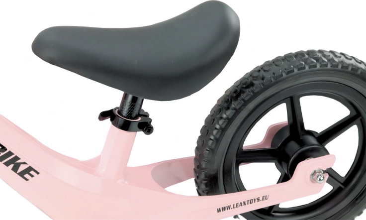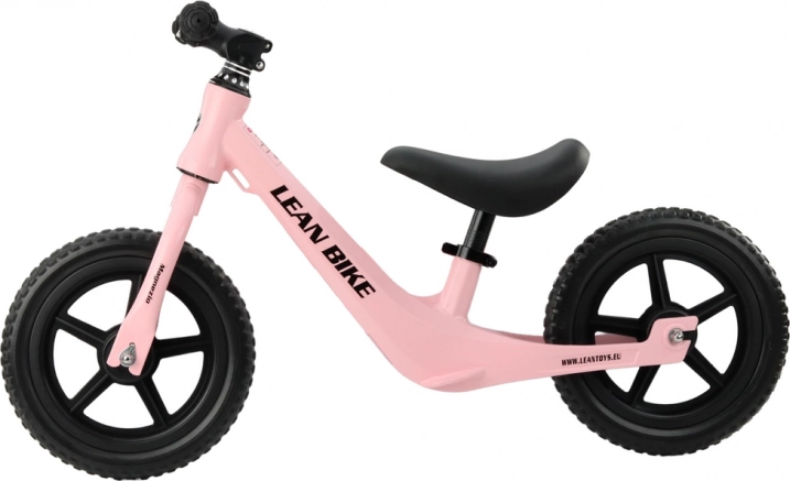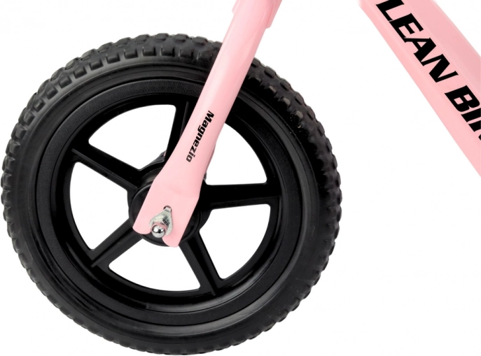 Růžové odrážedlo MAGNEZIO s lehkým hořčíkovým rámem a EVA koly 12”. Nastavitelné sedlo 31–45 cm, hmotnost 2,8 kg. Ideální pro učení rovnováhy.