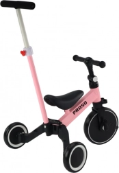 Model PRO50 je vybaven praktickou rukojetí pro vedení, kterou lze snadno odstranit, až dítě zvládne jízdu samostatně. Konstrukce umožňuje jízdu na roztažených nebo spojených zadních kolech, což zvyšuje stabilitu na začátku a umožňuje plynulý přechod na klasickou formu tříkolky.