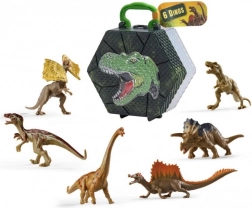 Objevte úžasný svět dinosaurů s touto sadou 6 figurek, každé o délce 8-9 cm, které jsou uloženy v praktické krabičce s motivem T-Rexe a uchem pro pohodlné nošení.