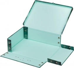 Praktický skládatelný kufřík ideální pro výtvarnou výchovu nebo úschovu hraček a drobností. Snadno se skládá a rozkládá díky důmyslnému systému patentek a okovaným rohům.