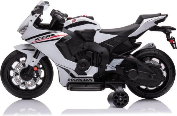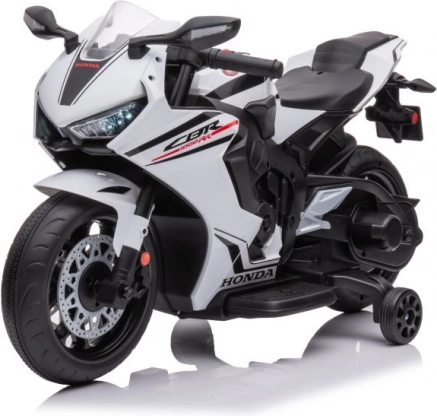 Dětský elektrický motocykl Honda CBR 1000RR je navržen pro malé jezdce, kteří chtějí zažít vzrušení z jízdy na motocyklu. Tento model v elegantní bílé barvě napodobuje skutečnou motorku značky Honda a je vybaven realistickými prvky, jako jsou výfuk, zrcátka a pečlivě zpracovaná kola.