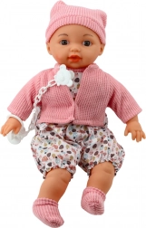 Dětská panenka v roztomilém kompletu včetně měkkého růžového svetříku, čepičky s oušky a vzorovaných kalhot. Oblečení lze snadno sundat, což umožňuje přizpůsobit hru podle vašich představ. Díky realistickému vzhledu, včetně otevřených úst a otevřených očí, skutečně připomíná opravdové miminko, což podporuje děti v rozvoji péče a zodpovědnosti.
