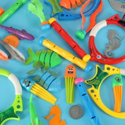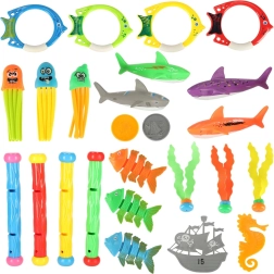 Pod vodou se děti mohou setkat s rybkami, mořskými koníky a chobotnicemi, které jim pomohou rozvíjet jejich dovednosti a motoriku. Součástí setu jsou i potápěčské trubičky, které dětem umožňují hračky snadno vyzvednout z vody. Sada se hodí nejen pro běžné hraní, ale také pro smyslovou integraci a rozvoj jemné motoriky.