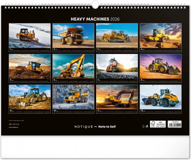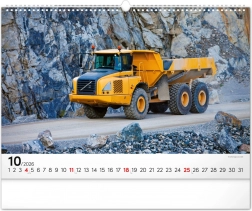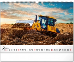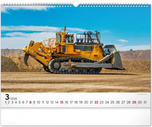 Tento nástěnný kalendář je ideální pro všechny nadšence a milovníky velkých stavebních strojů. Nabízí dvanáct snímků těžkotonážní techniky v šířkovém formátu, které dokonale vyniknou na každé stěně.