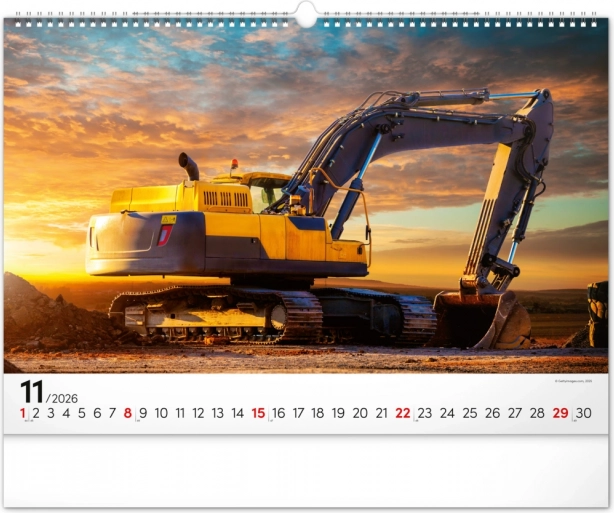 Představujeme vám kalendář určený pro ty, kteří oceňují sílu a majestát stavebních strojů. Každá stránka je věnována jednomu z těchto strojů, které vás uchvátí svým detailním zpracováním a vysokou kvalitou fotografie.