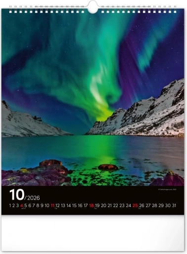 Zúročte svá snění a vyzdobte si svůj prostor krásnými obrazy polární záře s naším nástěnným kalendářem na rok 2026: