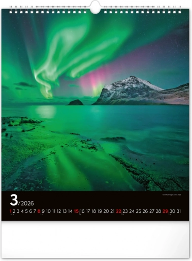 Zažijte kouzlo polární záře po celý rok s naším nástěnným kalendářem pro rok 2026. Dvanáct pečlivě vybraných snímků vás zavede do světa jedinečných přírodních úkazů.