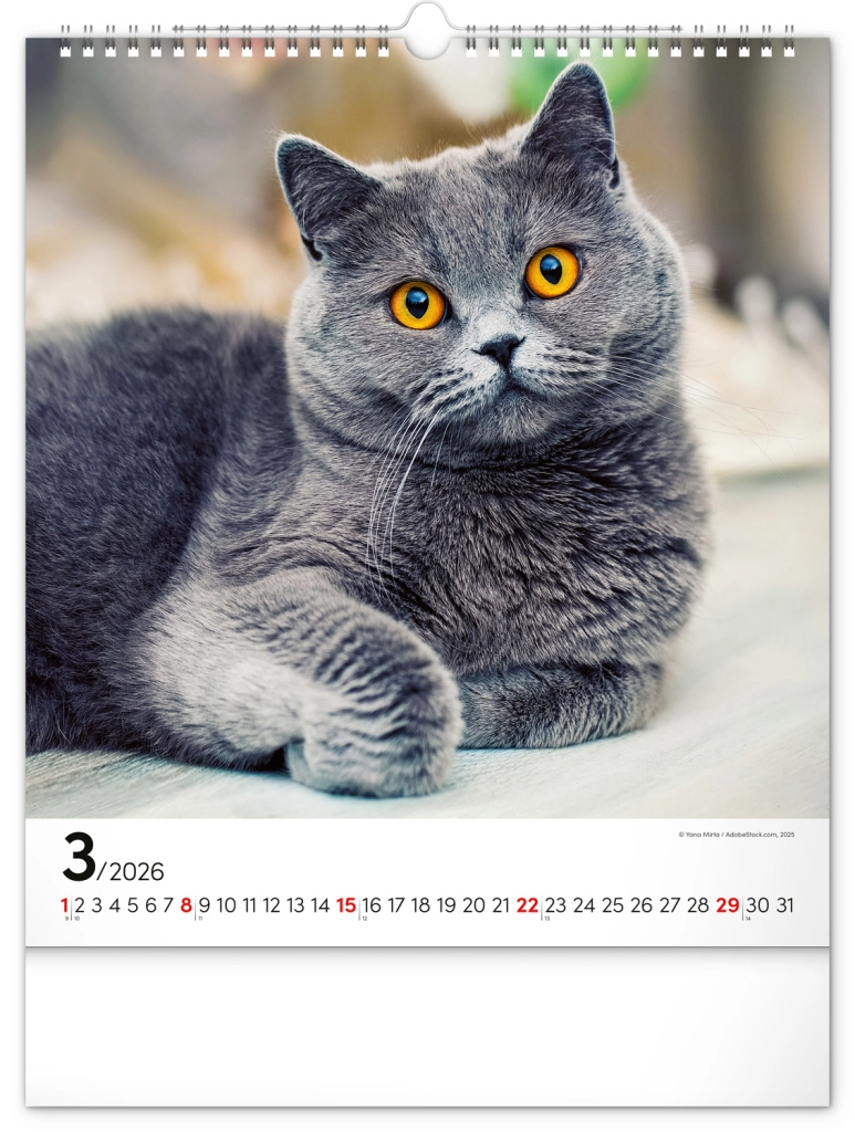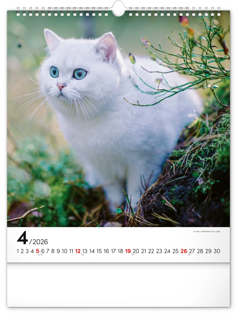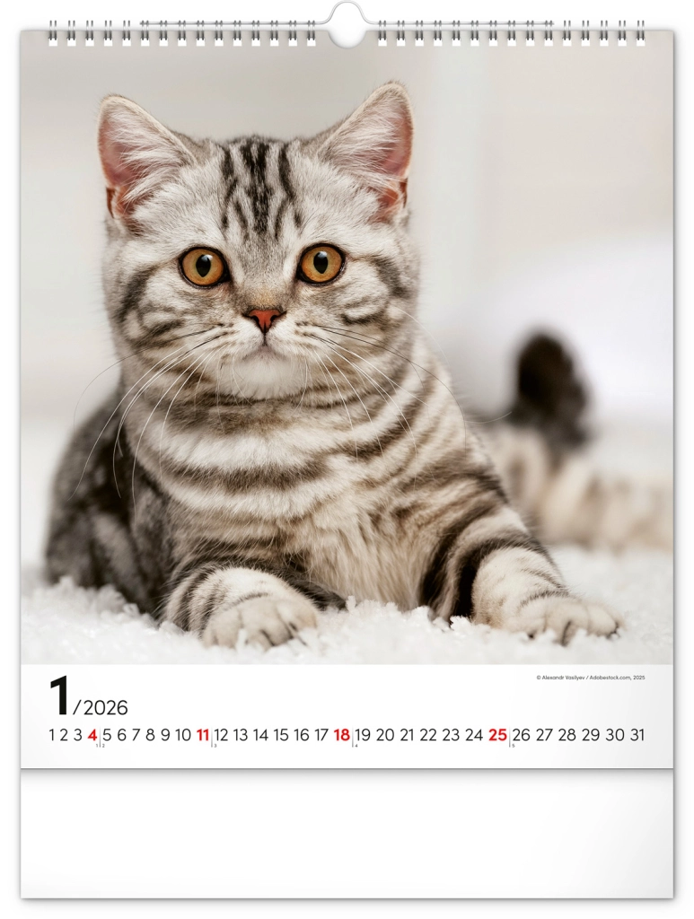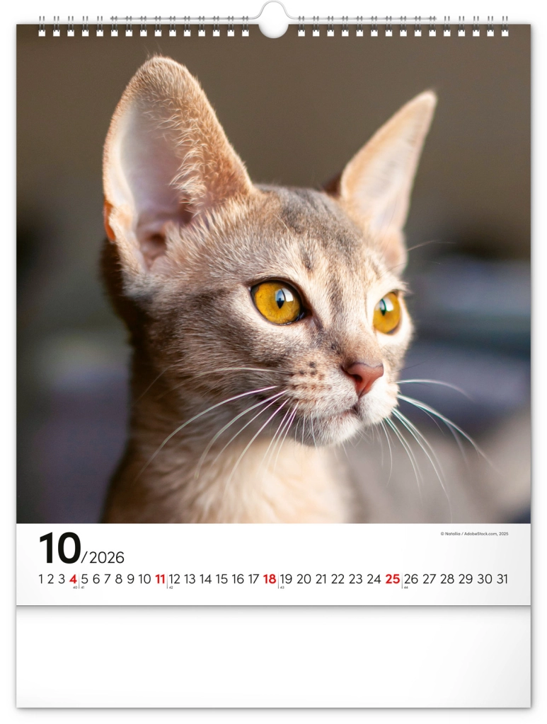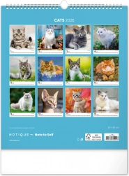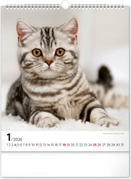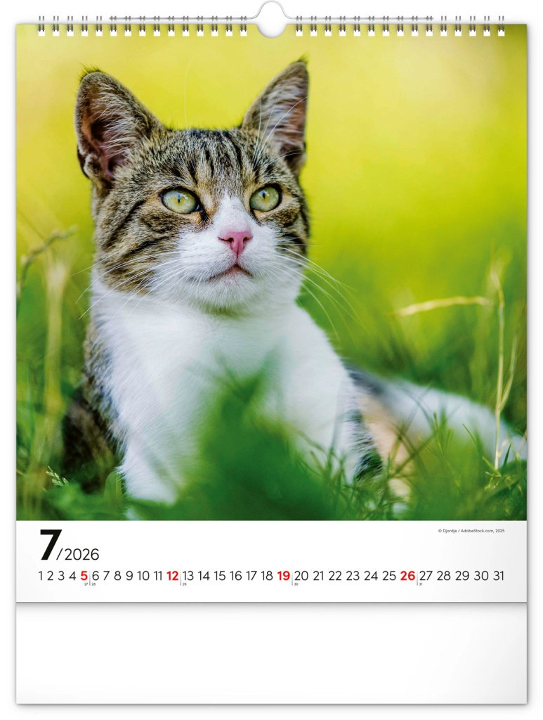 Nástěnný kalendář Kočky 2026 nabízí každý měsíc jinou fotografii osobité kočky, která jistě potěší milovníky těchto mazlíčků. Tento kalendář je nejen praktickým, ale především dekorativním doplňkem pro váš domov.