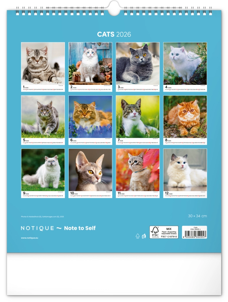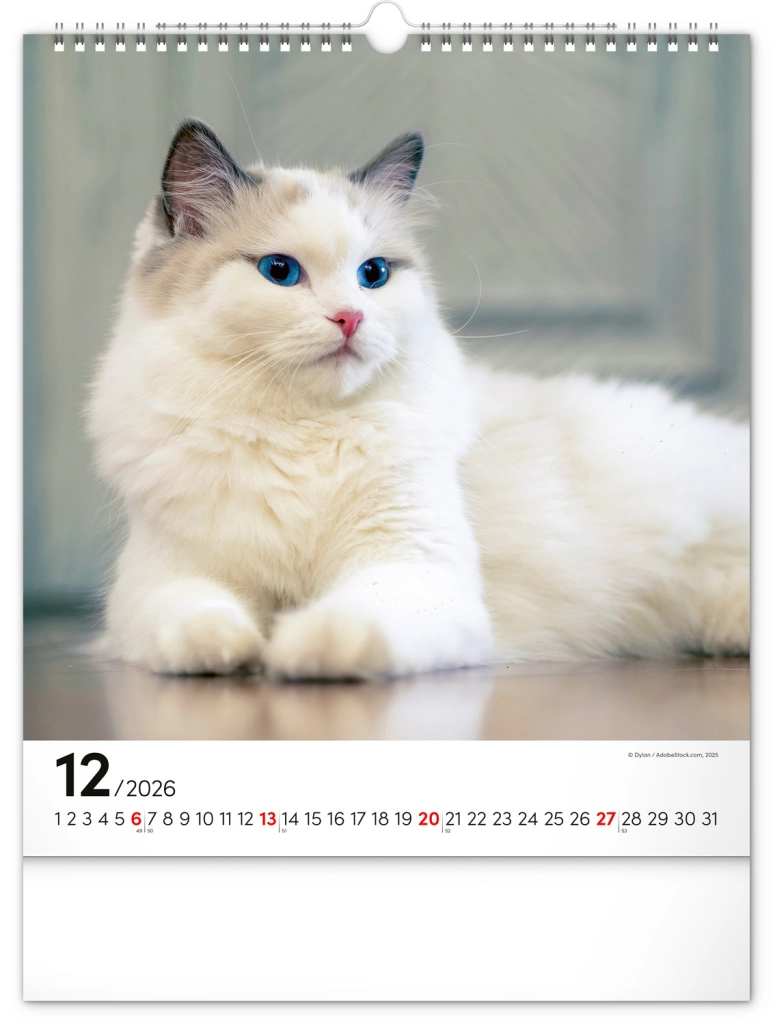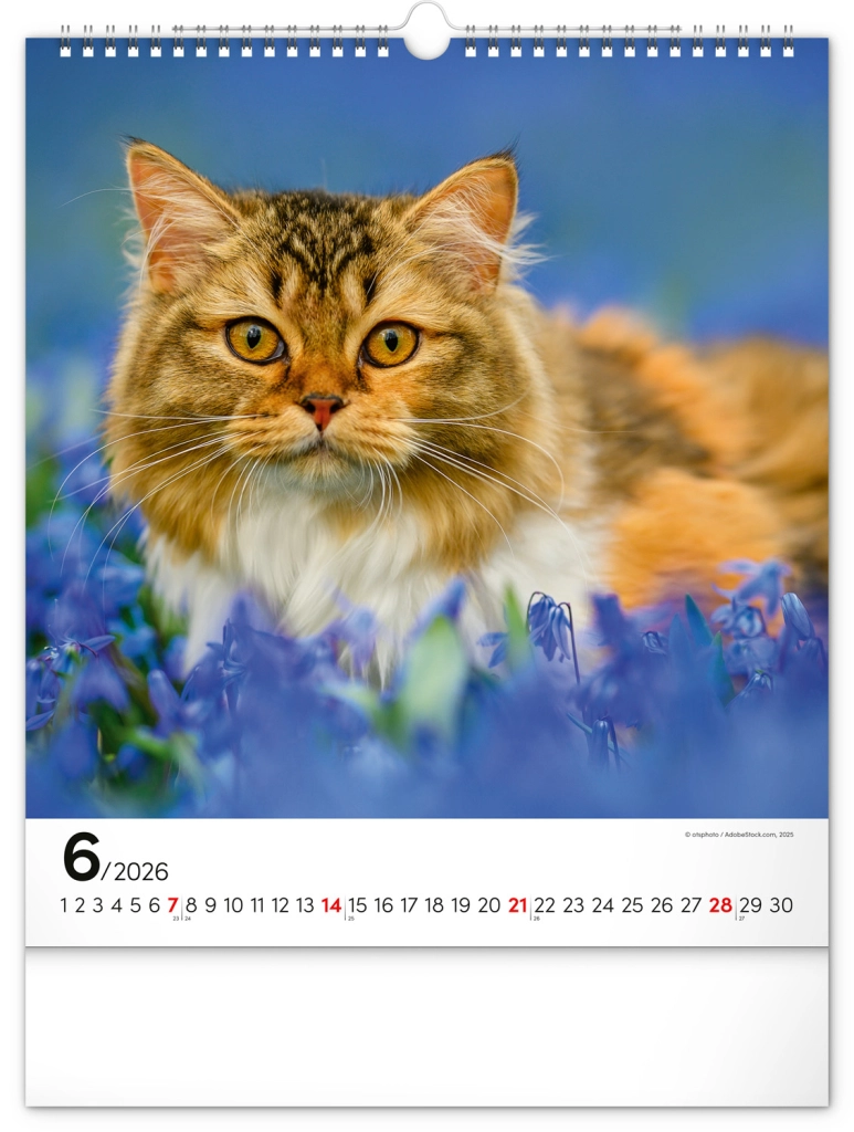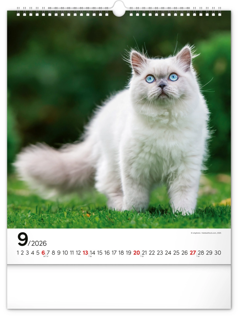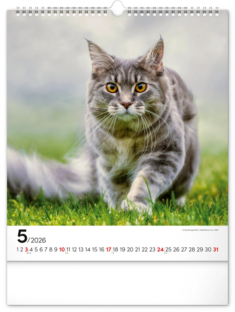 Nástěnný kalendář Kočky 2026 nabízí každý měsíc jinou fotografii osobité kočky, která jistě potěší milovníky těchto mazlíčků. Tento kalendář je nejen praktickým, ale především dekorativním doplňkem pro váš domov.