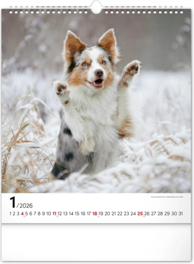 Každý měsíc přináší nový úchvatný obrázek vašeho oblíbeného psího plemene, který dodá vašemu interiéru čerstvý nádech. Kalendárium je univerzální, takže jej můžete používat po celý rok. Vyberte si tento nástěnný kalendář jako perfektní doplněk do kanceláře nebo domácnosti.