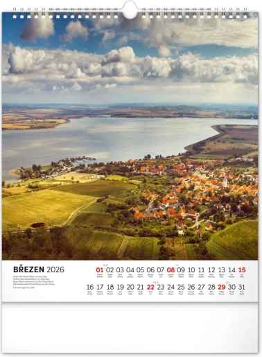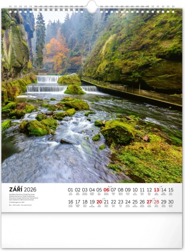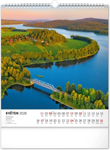 Objevte krásy vod z celé České republiky s nástěnným kalendářem Vodní království 2026. Nabízí dvanáct nádherných fotografií doplněných jednoduchým kalendáriem s českými jmény.