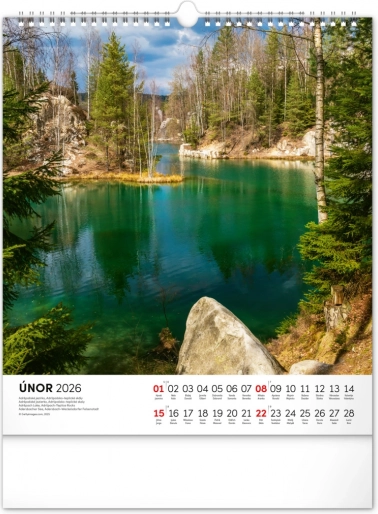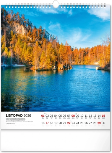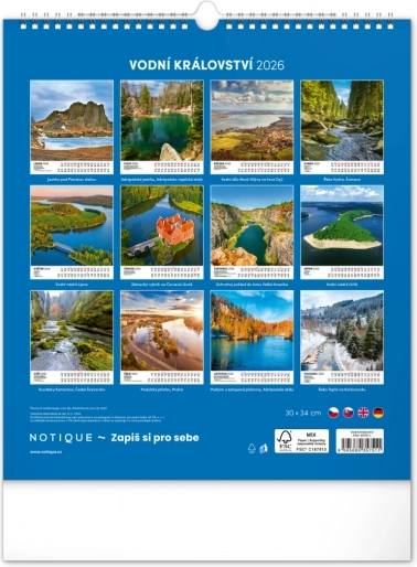 Nástěnný kalendář Vodní království 2026 s 12 fotografiemi českých vodních krás a českým kalendáriem. Formát 30 x 34 cm.