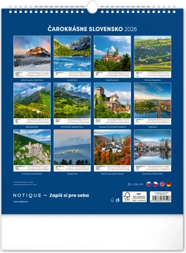 Objevte přírodní a kulturní dědictví Slovenska v našem nástěnném kalendáři pro rok 2026. Formát 30 x 34 cm nabízí nádherné fotografie Slovenska a přehledné slovenské kalendárium se zvýrazněnými svátky a nedělemi.