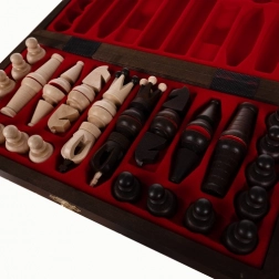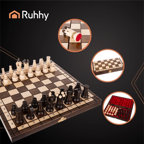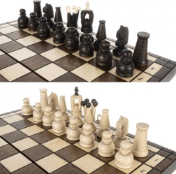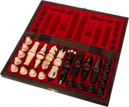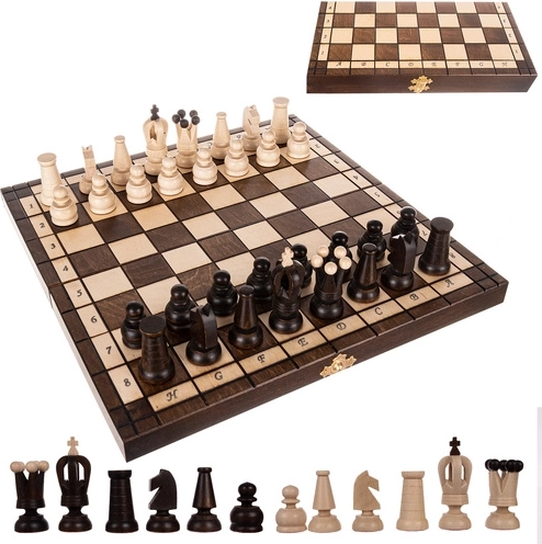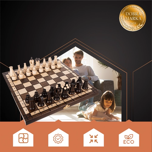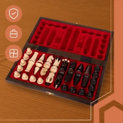 Výjimečný vzhled a klasická podoba – Ryté figury, kovové ozdoby a polomatný lak dávají šachovému setu estetický a stylový vzhled.