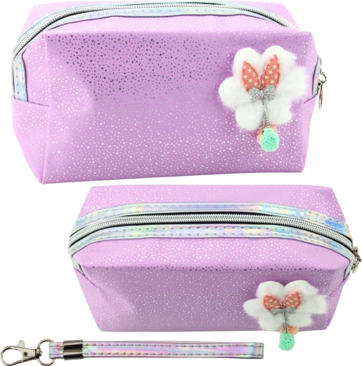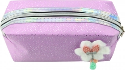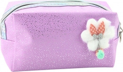 Stylová kosmetická taštička je jedinečný doplněk do školní výbavy nebo pro každodenní použití. Vyrobena v efektní fialové barvě, ozdobena jemnými, třpytivými drobky, přitahuje pozornost svým nepřehlédnutelným designem. Na přední straně taštičky se nachází roztomilá aplikace ve tvaru načechraného mráčku s mašlí, ke které jsou připojené dvě dekorativní kuličky, které dodávají celku jedinečný půvab.
