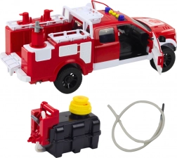 Hasičský vůz je vyroben z vysoce kvalitního plastu a obsahuje mnoho funkčních prvků. Na střeše vozidla se nachází odnímatelná nádrž s pumpičkou a pružnou hadicí, která umožňuje hraní na hasení požárů stříkáním vody. Dítě si tak může představit, že je skutečným hasičem a pomáhat "hasit" imaginární požáry doma, na zahradě nebo na hřišti.