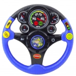 Interaktivní volant pro děti obsahuje 7 funkčních tlačítek, z nichž každé spouští jiné efekty - od zvuků motoru, přes světla až po melodie a vibrace. Tlačítko ON/OFF ve tvaru klíče umožňuje dítěti začít hrát si jako v opravdovém autě. Podsvícení imitace měřičů a realistické vibrace posilují pocit přítomnosti v kabině automobilu.
