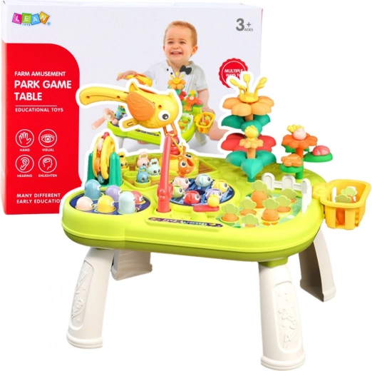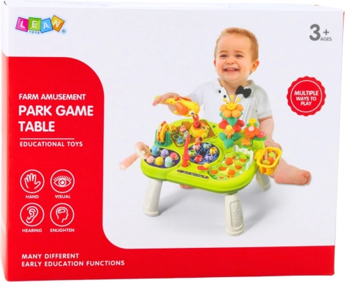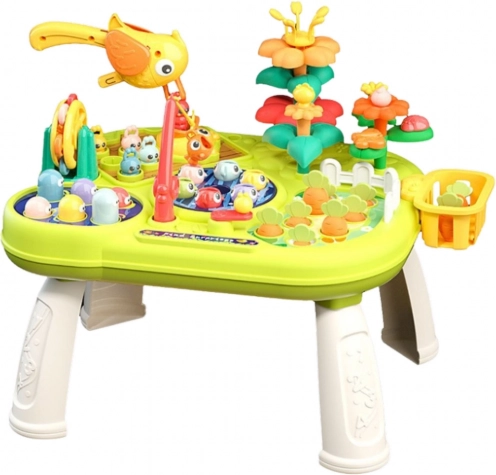 Sada obsahuje různé funkce jako lovení rybiček speciální udicou, hra na pražení krtka (whack-a-mole), zahradničení nebo přiřazování tvarů a barev. Každá aktivita podporuje různé oblasti rozvoje jako koordinaci oko-ruka, logické myšlení, koncentraci a učení základních prostorových vztahů. Barevné, dynamické prvky stimulují smysly.