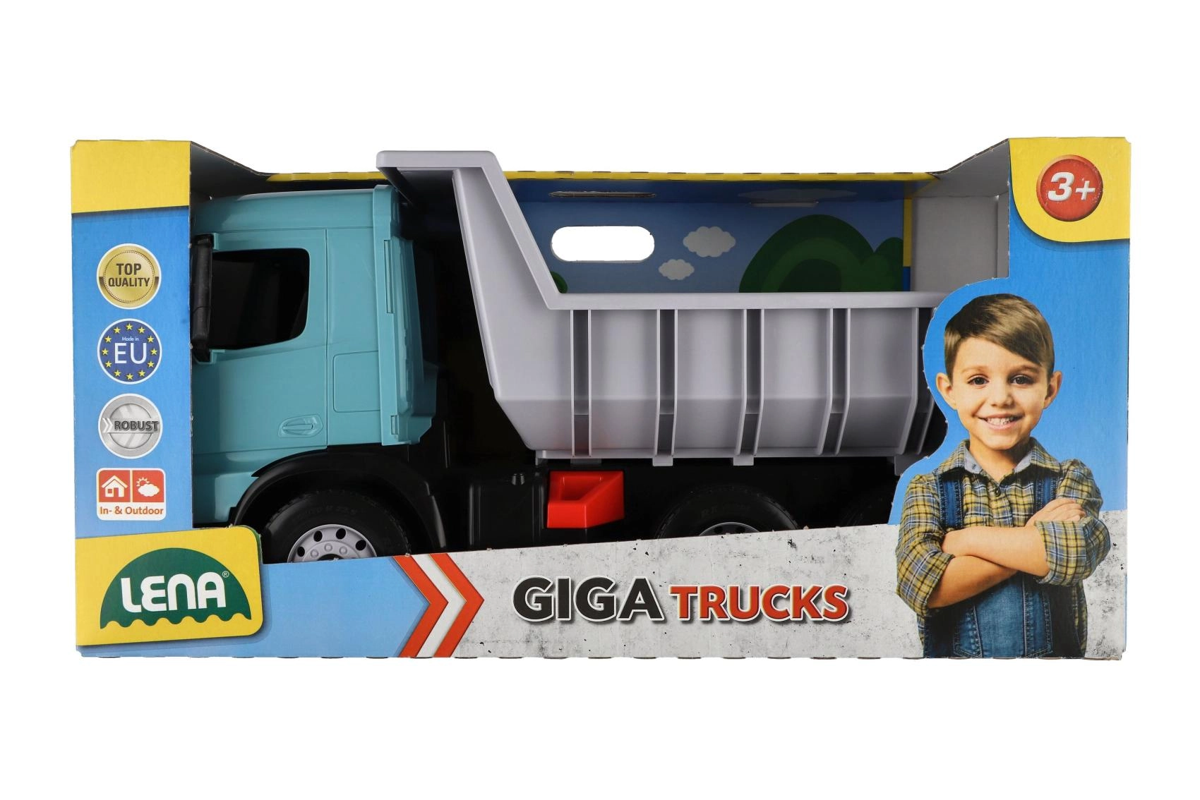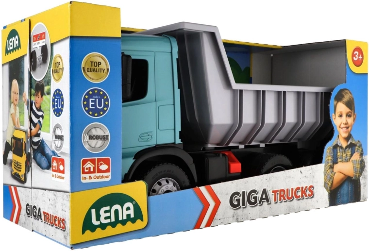 Tento robustní sklápěč z řady Giga Trucks je stvořený pro malé stavitele. Díky velké výklopné korbě s pojistkou zvládne bez potíží převážet i větší náklady a bezpečně je vyložit. Realistické detaily kabiny AROCS podporují kreativní a tematickou hru na stavbě, na zahradě i v dětském pokojíčku.