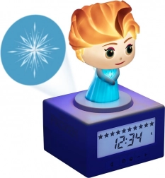 Svítící stolní budík s postavičkou princezny Elsy z filmu Frozen. Obsahuje USB kabel pro napájení a projekci na stěnu pro snadnější usínání.