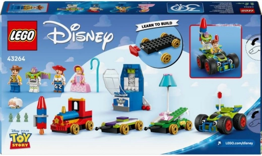 Tento pestrý set inspirovaný filmy Disney a Pixar nabízí vše, co děti milují: vlak s připojitelnými plošinkami, otevírací kokpit rakety a zábavné detailní doplňky. Děti si užijí okamžité příběhy s oblíbenými hrdiny TOY STORY a oslaví 30. výročí této legendární série.