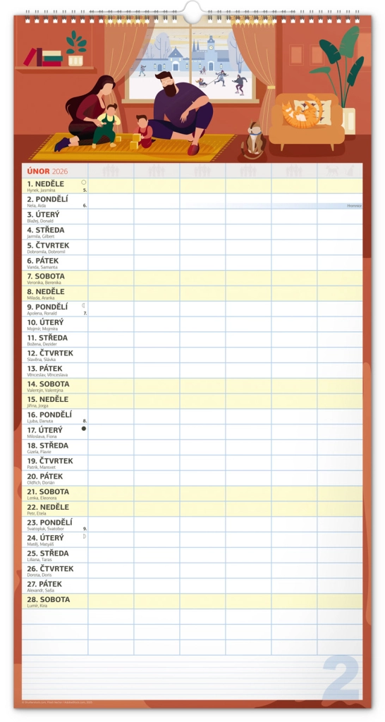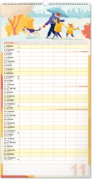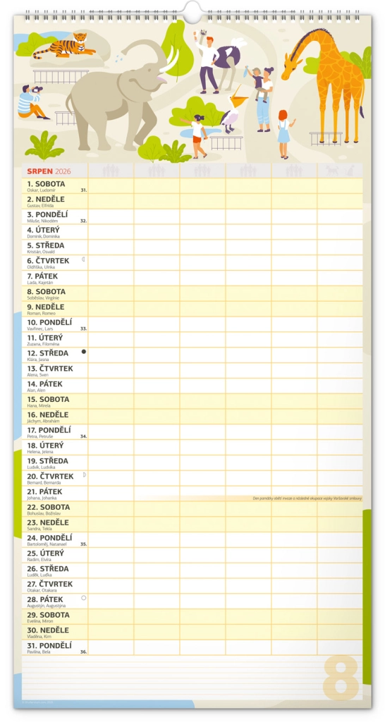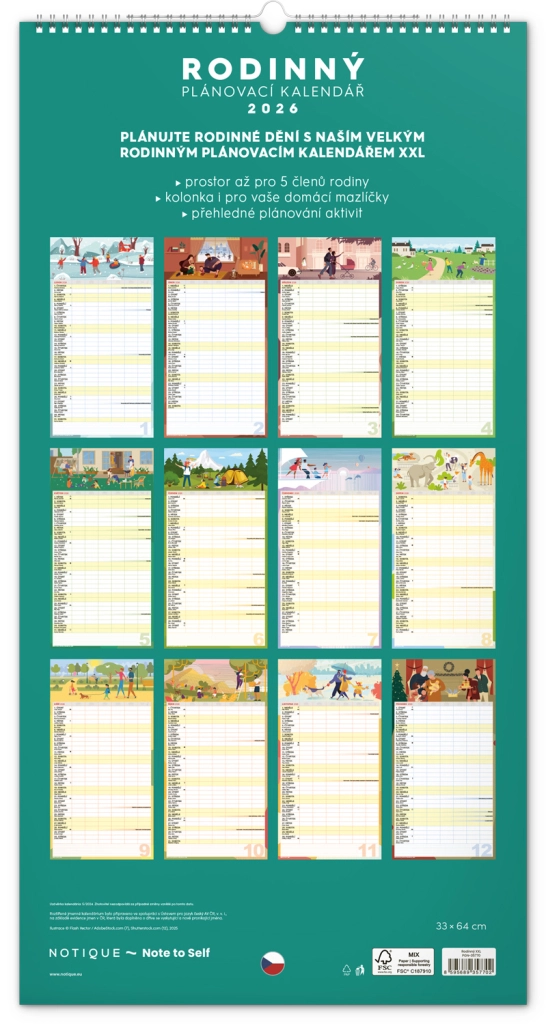 Tento velkoformátový kalendář o rozměrech 33 x 64 cm poskytuje dostatek prostoru pro vaše poznámky a plánování aktivit. Elegantní a veselá grafika přidává estetickou hodnotu a barevně odlišuje jednotlivé části roku, což usnadňuje orientaci.