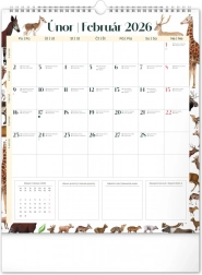 Objevte kouzlo přírody s nástěnným plánovacím kalendářem Animalium 2026, jehož rozměry jsou 30 x 34 cm. Tento kalendář nabízí: