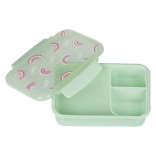 Praktický a variabilní svačinový box s vyjímatelnými přihrádkami pro snadné oddělení jednotlivých jídel.