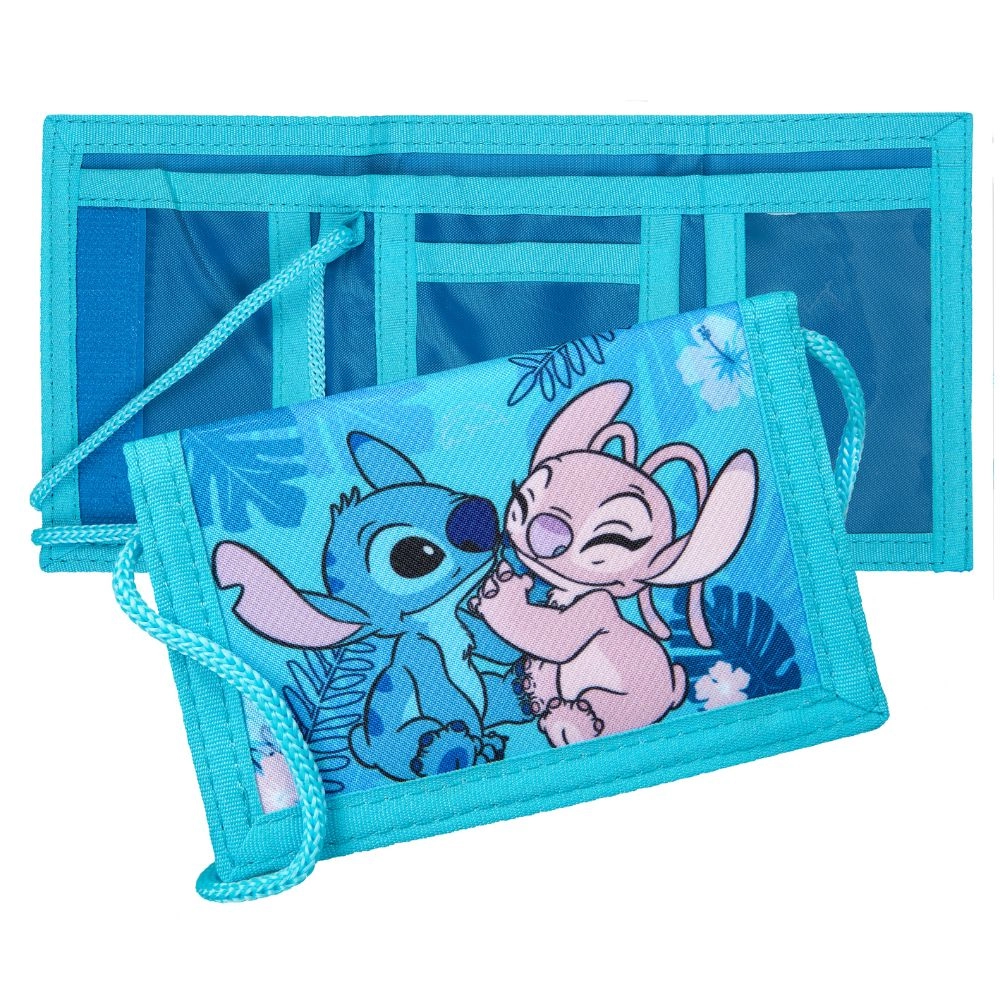 Praktická dětská peněženka s motivem oblíbené postavičky Stitch. Vyrobená z odolného polyesteru, se zapínáním na suchý zip a šňůrkou na krk, ideální pro malé výletníky i školáky.