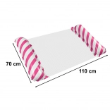 Nafukovací lehátko s pohodlnou konstrukcí umožňuje sedět nebo ležet na vodě s klidem. Design s růžovo-bílými pruhy je snadno viditelný, což dodává lehátku na atraktivitě. Po vypuštění vzduchu je díky snadné úklidnosti skladné a vhodné pro všechny cestovatele.